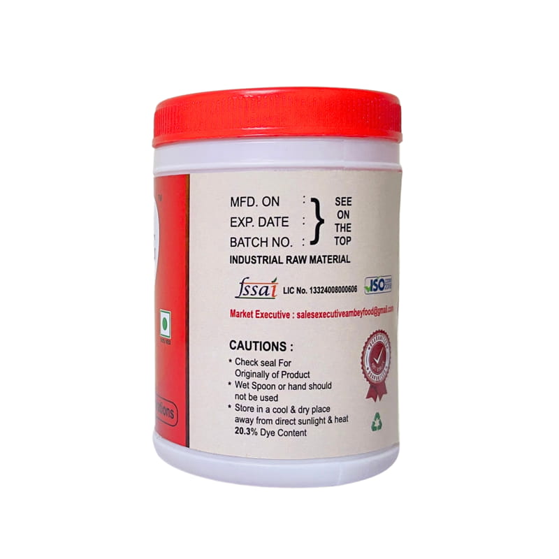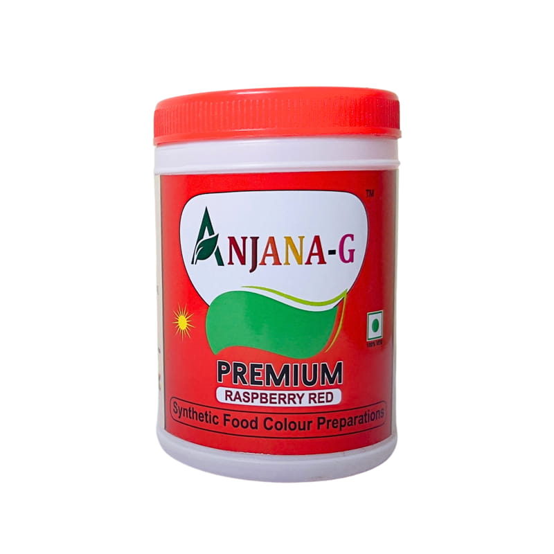 Anjana-G Premium Raspberry Red is a synthetic food color preparation designed to provide a striking raspberry red hue to cakes, sweets, and beverages. Packaged in a convenient container, it delivers rich color intensity, consistent results, and is suitable for both home and professional kitchens.